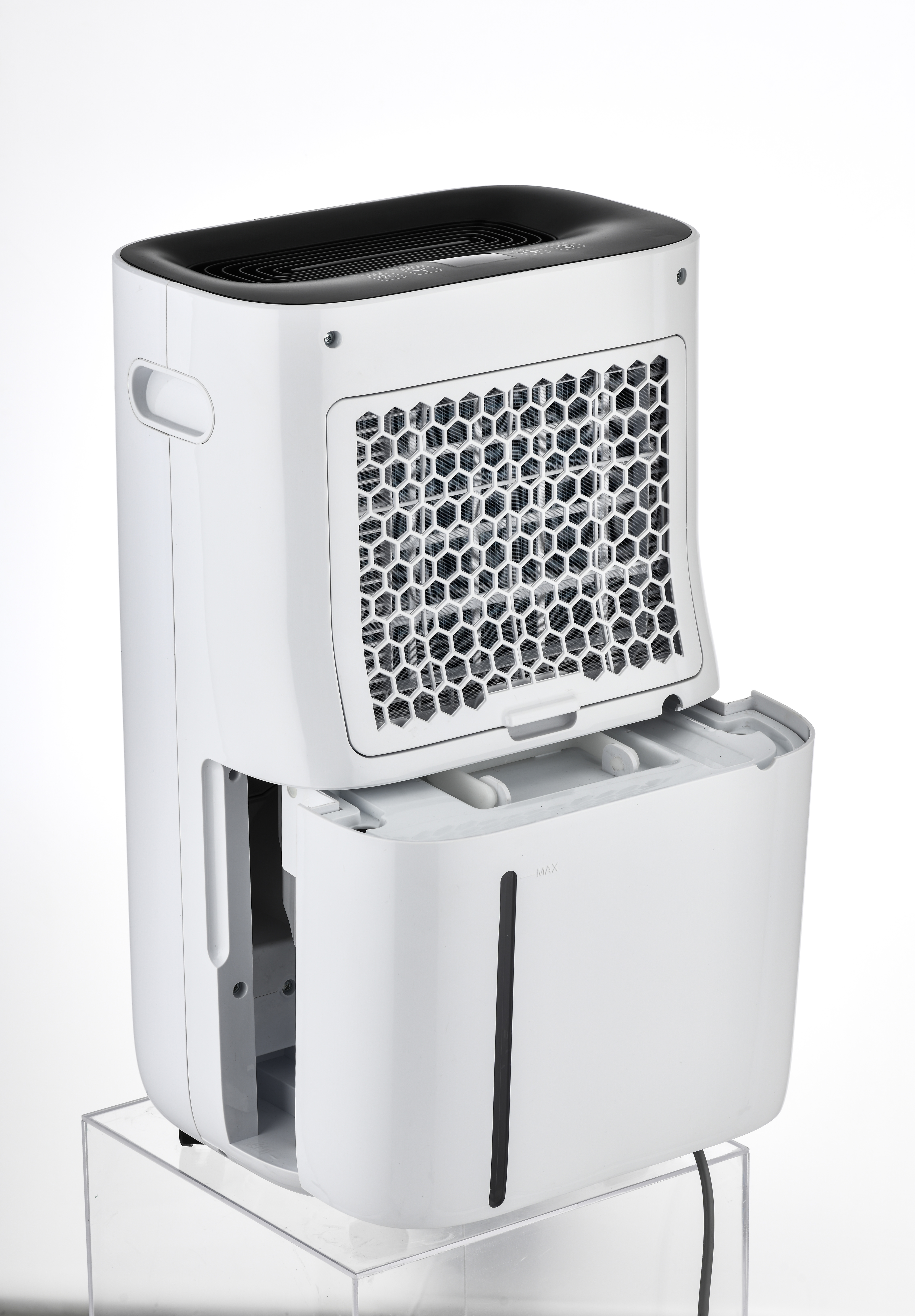 Осушитель оснащен интуитивно понятной сенсорной панелью управления, режимом самодиагностики, регулировкой интенсивности осушения, а так же таймером для установки времени работы устройства. Фильтр дополнительной очистки воздуха устранит из воздуха различные загрязнения. Так же устройство оснащено внутренним баком для сбора конденсата.